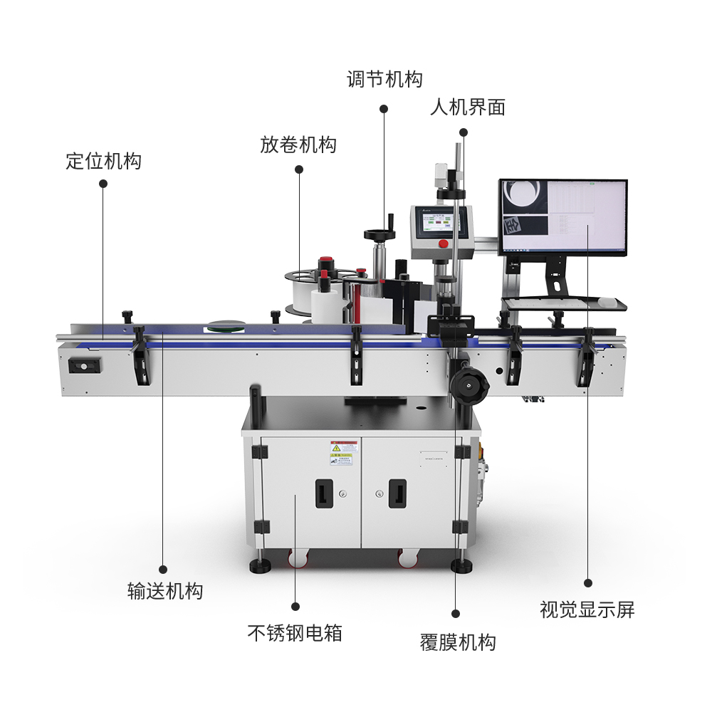 本機(jī)屬于圓瓶貼標(biāo)機(jī),專用于圓瓶類貼標(biāo)簽,可貼單標(biāo)和雙標(biāo),正背雙標(biāo)間距可靈活調(diào)整;具備錐形瓶貼標(biāo)功能;選配圓周定位檢測(cè)裝置,可實(shí)現(xiàn)在圓周面指定位置貼標(biāo)。